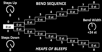 Set the amount of steps you want to bend through separately in each direction, then set values of the steps in semitones and start bending.