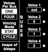 It splits up the voices into 4 different buses with one or four voices per channel. These buses can be received by my Heap MIDI Receiver. ( https://gum.co/VXabQe )