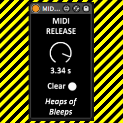 This free Max for Live device delays the release of MIDI notes for certain amount of time. Control the amount of release time with the “Release” dial. Clear notes held by the device with the “Clear” button.