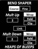 This device is like a pitch bend waveshaper. Use it to apply gain to or “multiply” your pitch bend modulations and sequences and then fold, wrap, or clip them. Control the upwards and downwards multiplication and shaping settings separately, or link them. Control the multiplication in with whole numbers (coarse mode) or decimals (fine mode).